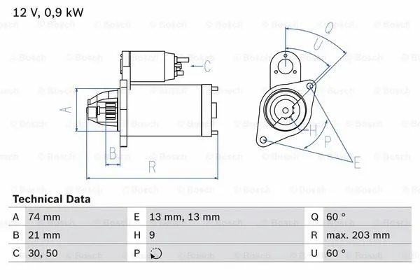Стартер (12В, 0,9кВт, новий) MINI (R50, R53), (R52) 1.6 06.01-07.08