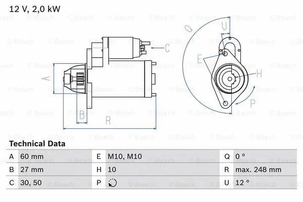 0986023110 BOSCH Стартер (12В, 2кВт, відновлений) MERCEDES C (C204), C T-MODEL (S204), C (W204), CLS (C218), CLS SHOOTING BRAKE (X218), E (A207), E (C207), E T-MODEL (S212), E (W212), GLK (X204) 3.0/3.5 06.08-