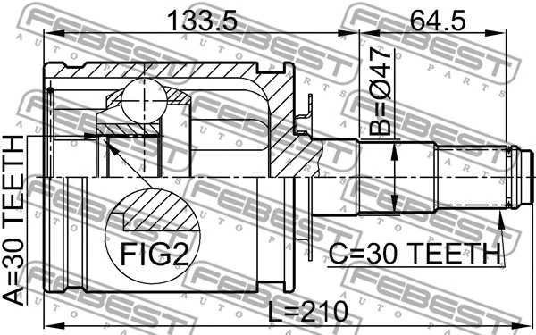 ШРКШ (ШРУС) внутрішній 30x47x30 LAND CRUISER 100 98-; ШРУС; Шрус ВНУТРЕННИЙ 30X47X30 (TOYOTA LAND CRUISER 100 HDJ101/UZJ100 1998-2007) FEBEST