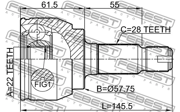 2910FLIIR FEBEST шрус зовнішній задній 22x57.7x28