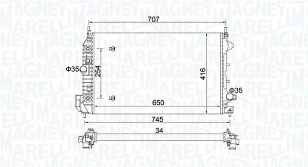 MAGNETI MARELLI OPEL Радіатор системи охолодження двигуна (автомат) SIGNUM 1.9 CDTI 04-, VECTRA C GTS 1.9 CDTI 04-, CADILLAC, FIAT, SAAB