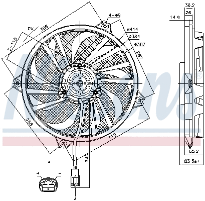 NISSENS CITROEN Вентилятор радіатора Berlingo, Xsara 1.4/2.0HDI 02-, Peugeot Partner; Вентилятор охолодження двигуна; Вентилятор радіатора; Вентилятор радіатора Лів/Прав (з корпусом) CITROEN BERLINGO, C5 III, XSARA FIAT SCUDO PEUGEOT 307, 406, PARTNER, PARTNER ORIGIN 1.1-Electric 06.96-03.16