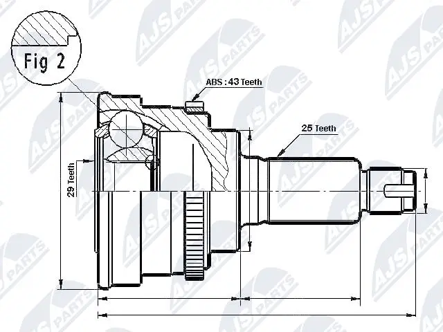 Шарнір приводного валу зовнішній Лів/Прав (25z/29z/49,1мм ABS:43) SUZUKI IGNIS I, SWIFT III 1.2-1.5 10.00-