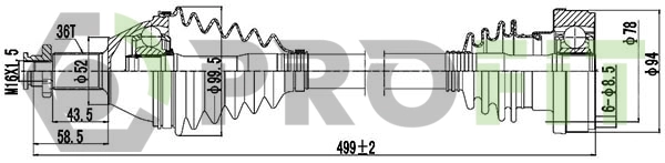 Привідний вал передн Лів 503мм SEAT CORDOBA, IBIZA III SKODA FABIA I, FABIA I PRAKTIK, FABIA II, ROOMSTER, ROOMSTER PRAKTIK VW POLO IV 1.2-1.9D 10.99-05.15