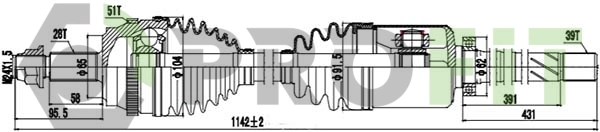 SKF RENAULT піввісь прав (з ABS 1142mm 28x39зуб. Master 2.5dCI 00-